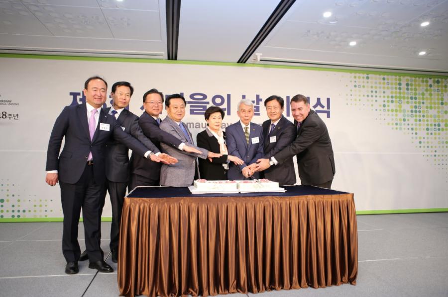 Starting with opening performance by percussion band “Deulsori”, proceedings of the ceremony included presentation of the Saemaul Award and the Ministry of the Interior Award, commemorative remarks by President of KSC, congratulatory remarks by Minister of the Interior and Safety, congratulatory remarks by Ambassador of Honduras to Korea, singing of the Saemaul Song, commemorative photograph, and rice cake-cutting ceremony.