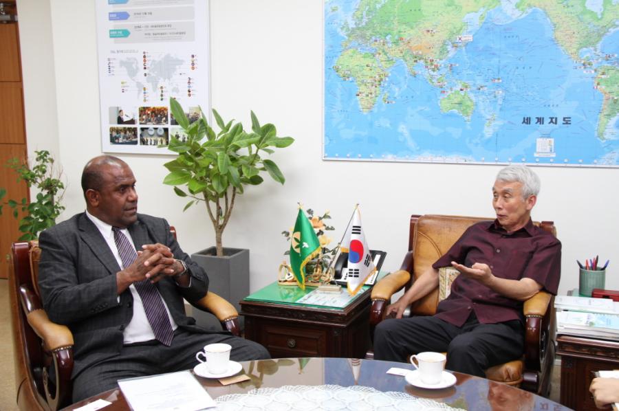 President Chung, Sung Heon of Korea Saemaul Undong Center had a meeting with Mr. Joreti Dakuwaqa, charge d’affaires ad interim of the embassy of the Republic of Fiji to Korea on June 26. This meeting was organized to share experience of Saemaul Undong in Korea and discuss mutual cooperation methods between two organizations.
